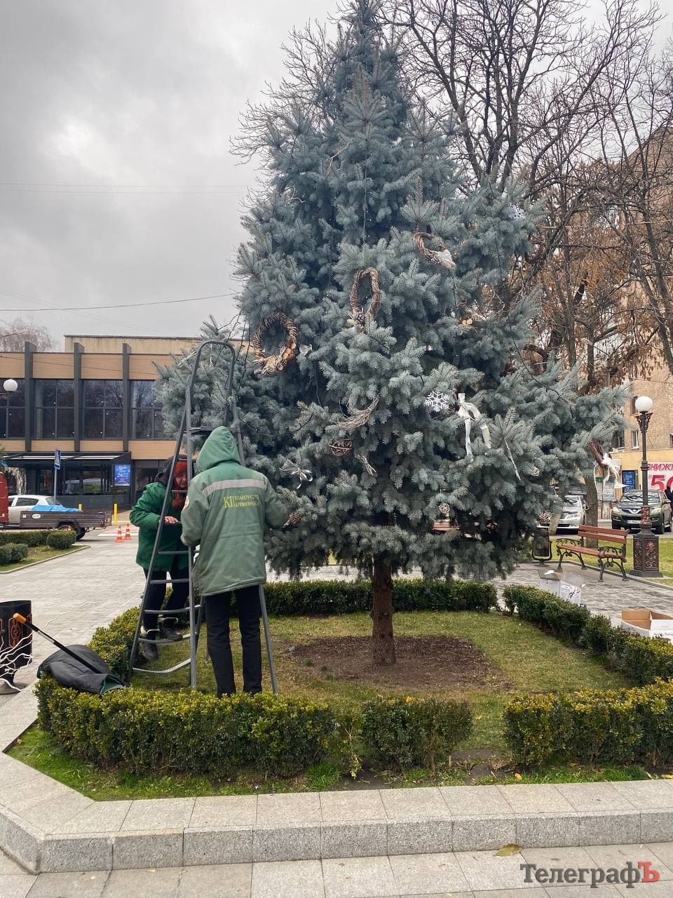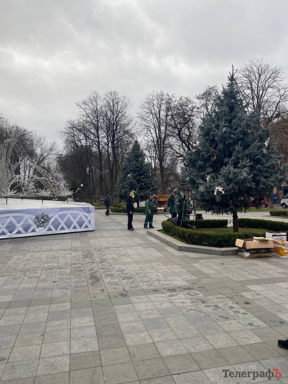 У перший день зими працівники «Благоустрою Кременчука» створювали новорічну казку у сквері ім. Олега Бабаєва.
