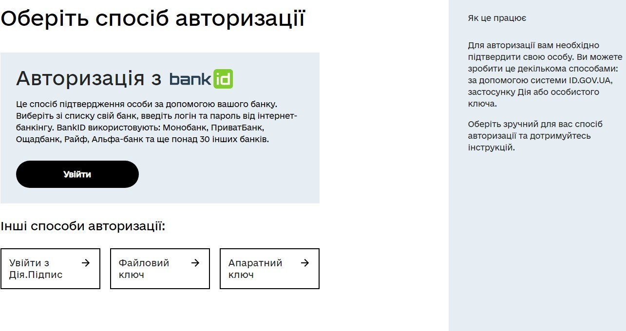 Щоб отримати послугу, треба авторизуватися одним із способів.