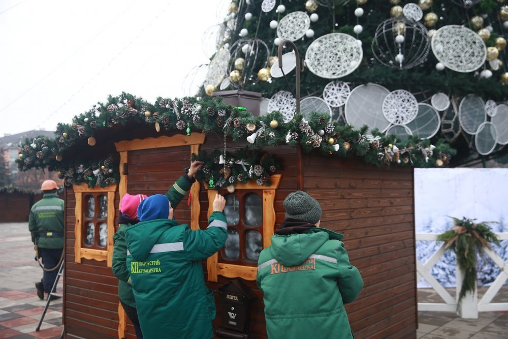 Працівники «Благоустрою Кременчука» повністю встановили святкове деревце і наразі закінчують облаштовувати новорічне містечко та казковий декор навколо ялинки.