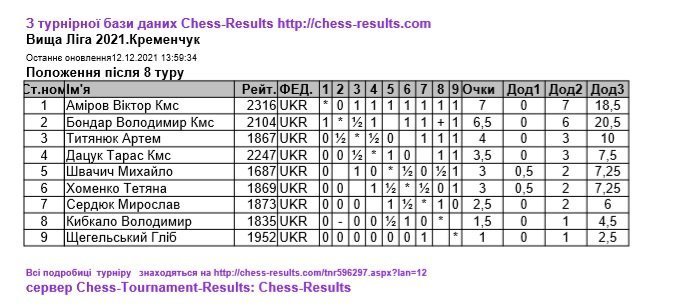 – Так відмовився захищати свій титул чинний чемпіон міста Петров-Хоменко, який всупереч прогнозам став чемпіоном в минулому році, багаторазовий чемпіон міста Віктор Аміров хоч і займає поки першу сходинку, випередив на півочка кандидата в майстри спорту Володимира Бондаря з Горішніх Плавнів, в останнього гра в запасі, та лише четвертий Тарас Дацюк слідом за кращим юніором міста Артемом Титянюком з «Каїсси», якого він зараз тренує. Остаточно розставить усіх учасників останній тур, – розповів керівник шахово-шашкового клубу «Каїсси» Володимир Груздєв.
