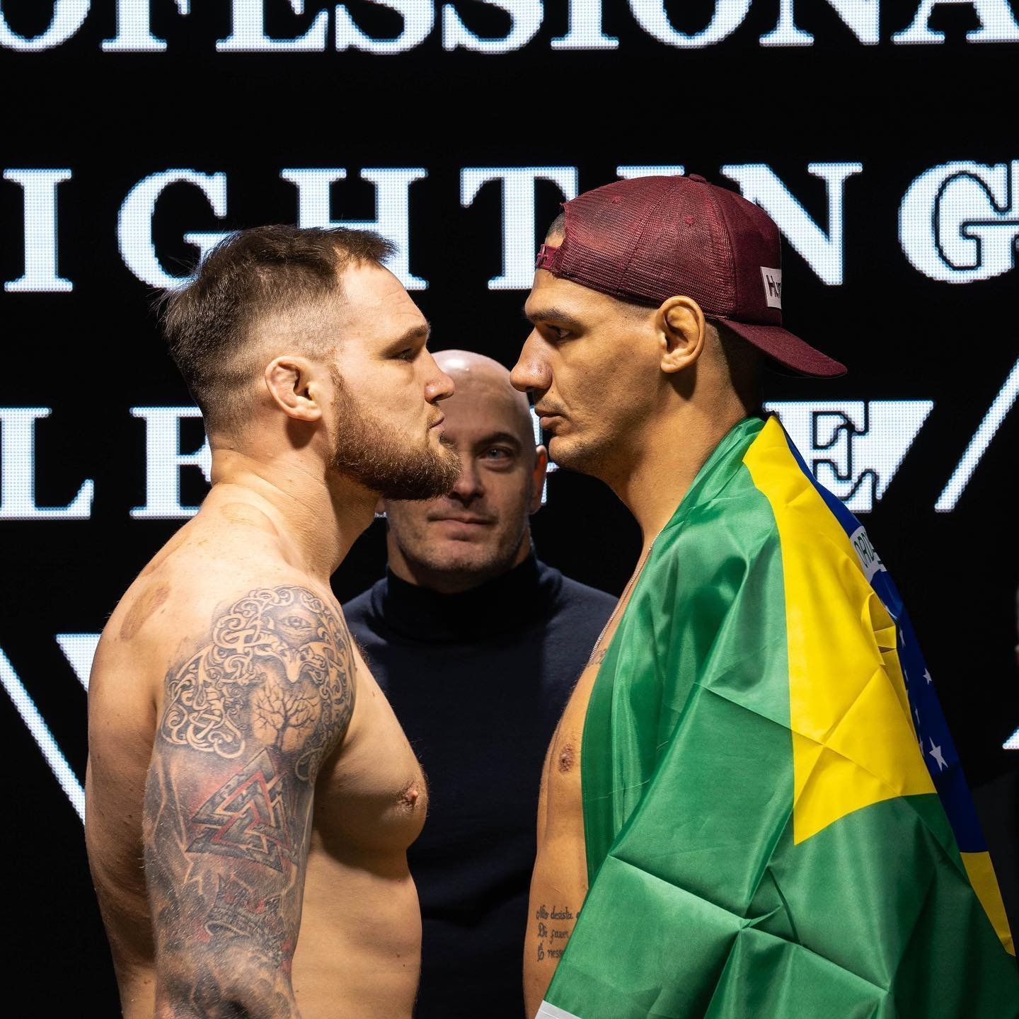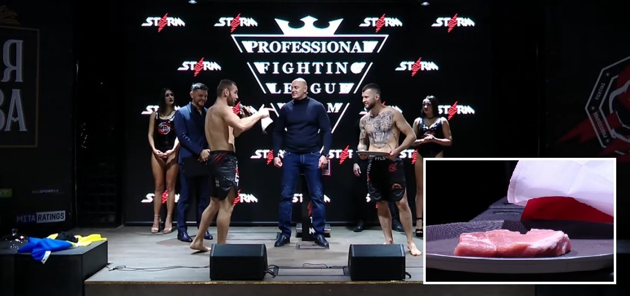 Кременчужанин Максим Сергеєв взагалі влаштував шоу під час «битви поглядів» та виходу в октагон. На зважування Максим приніс шматок м’яса для поляка. «Погодуй свого тигра», – звернувся англійською Максим Сергеєв до Патріка Рогужа, вказуючи на татуювання тигра на грудях суперника.