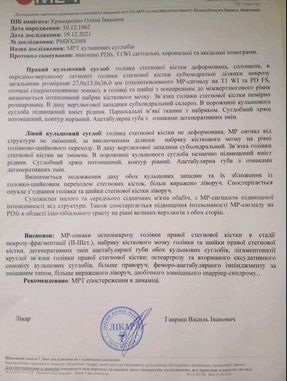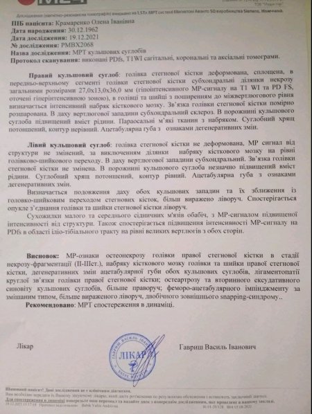 Кременчужанці Олені Іванівні Крамаренко терміново потрібна операція із заміни правого тазостегнового суглоба. Вартість операції – 100 тисяч гривень.