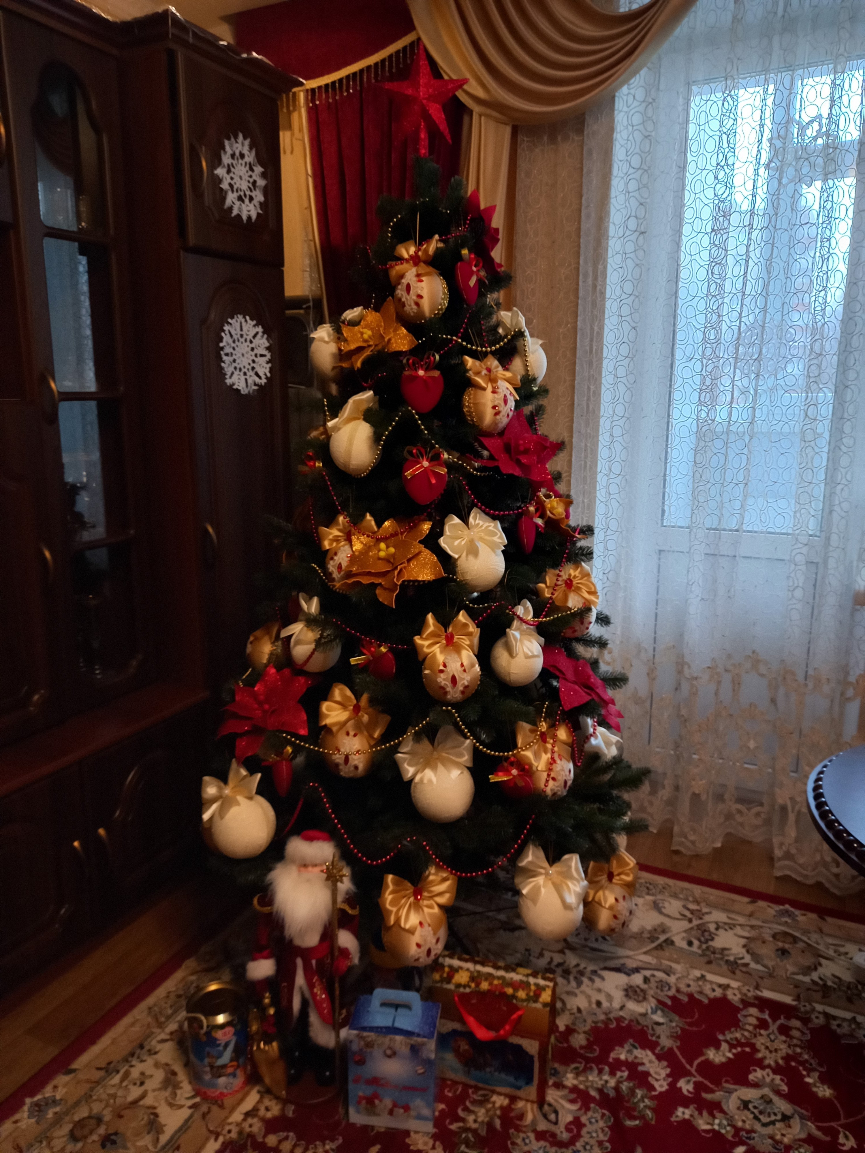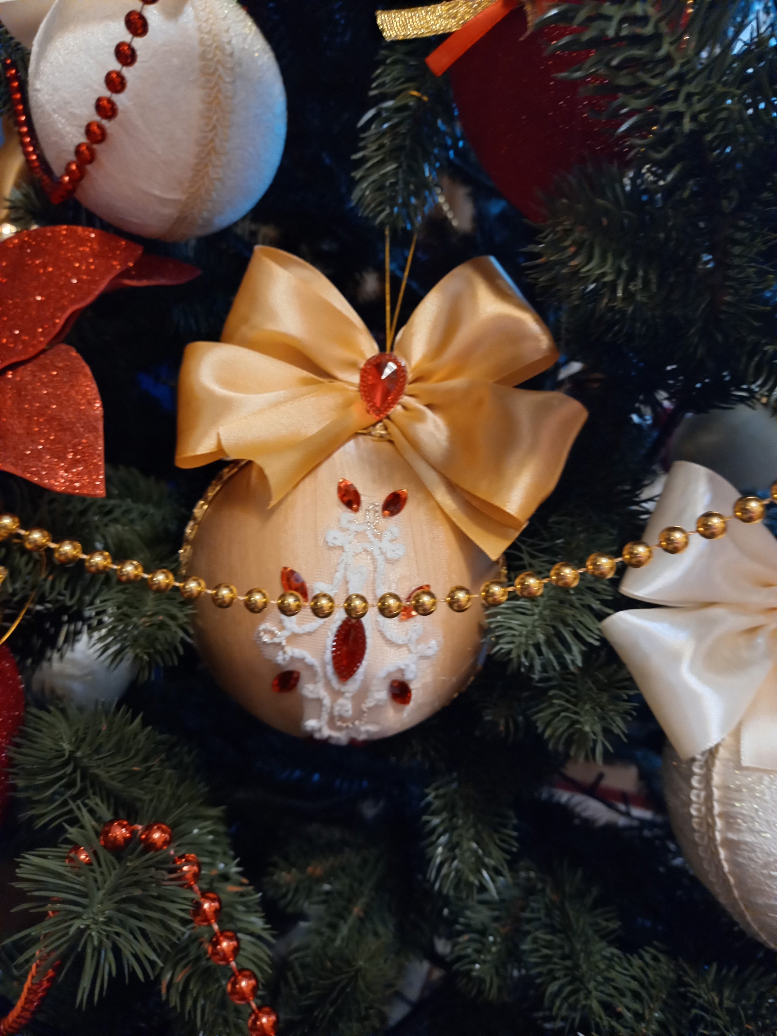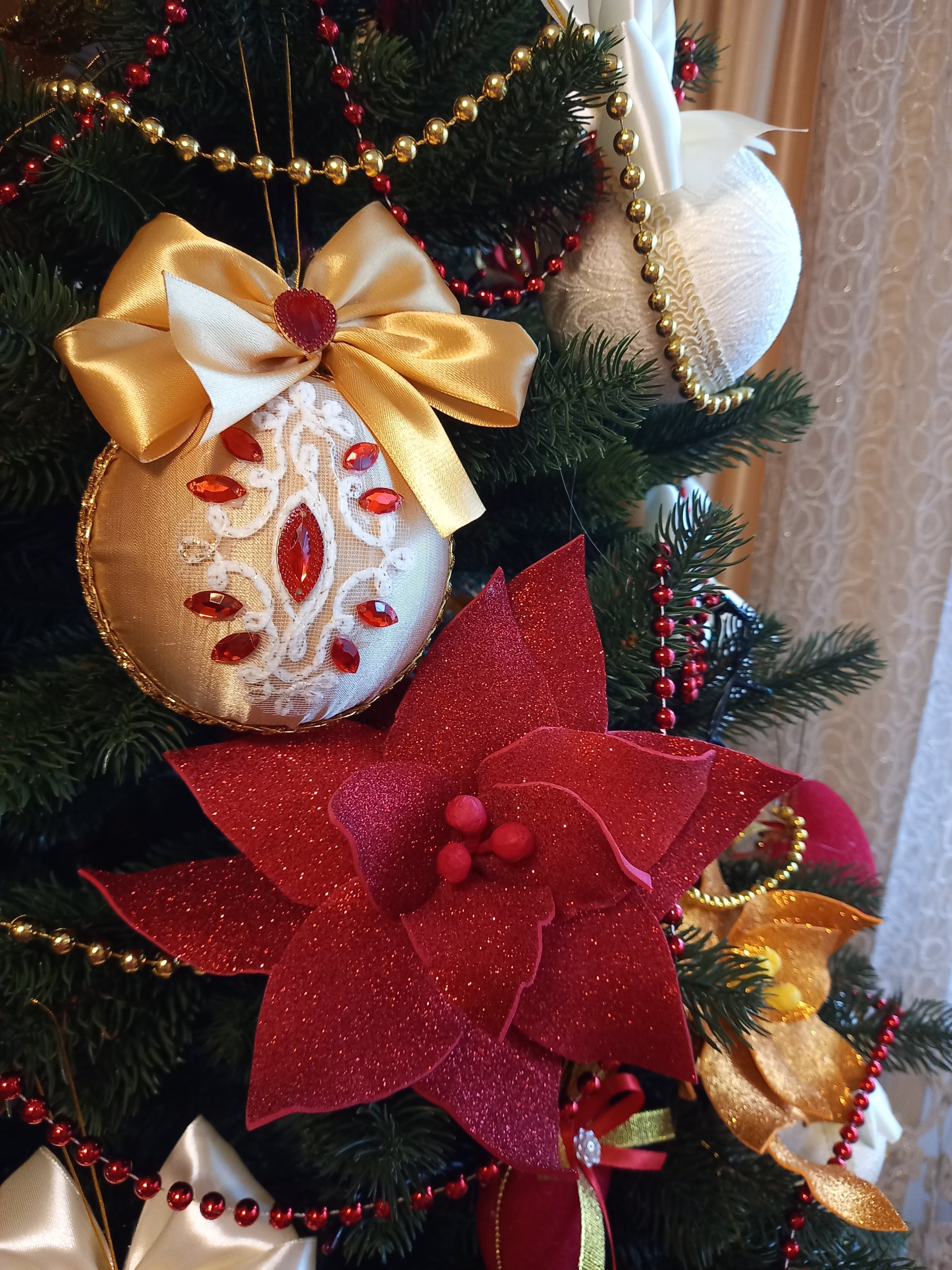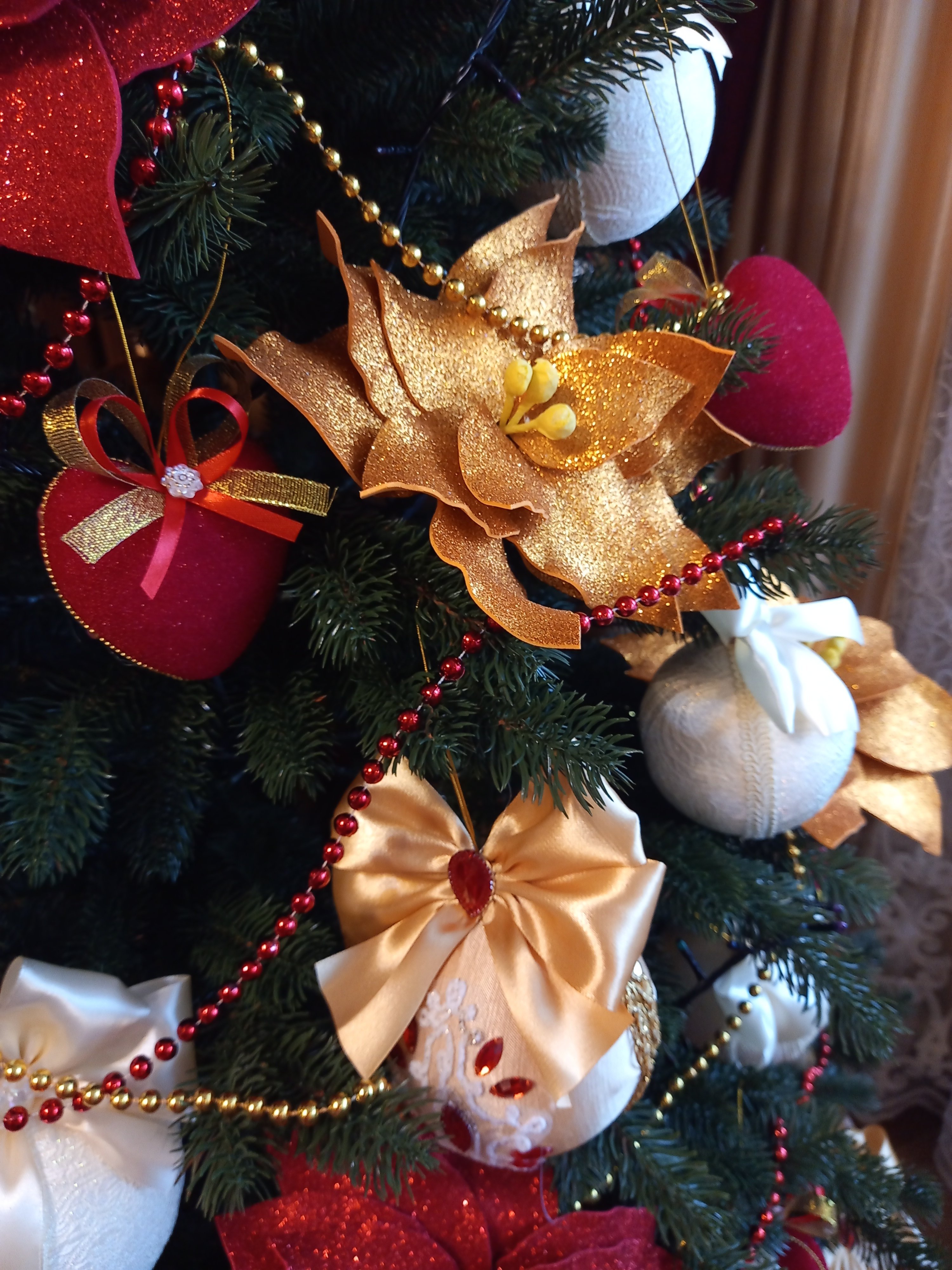 Усі іграшки та прикраси на ялинці (крім намиста) ручної роботи, власноруч виготовлені. Зроблені з любов’ю до цьогорічних свят, стануть сімейною реліквією