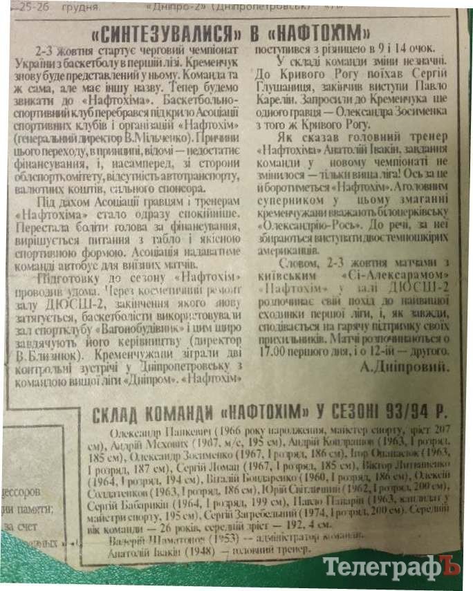 Восени цього року відзначили сумний ювілей – 25 років тому, у листопаді 1996 року, припинив існування баскетбольний клуб «Нафтохімік» (з 1990 до 1993 року – ВСК «Синтез»).
