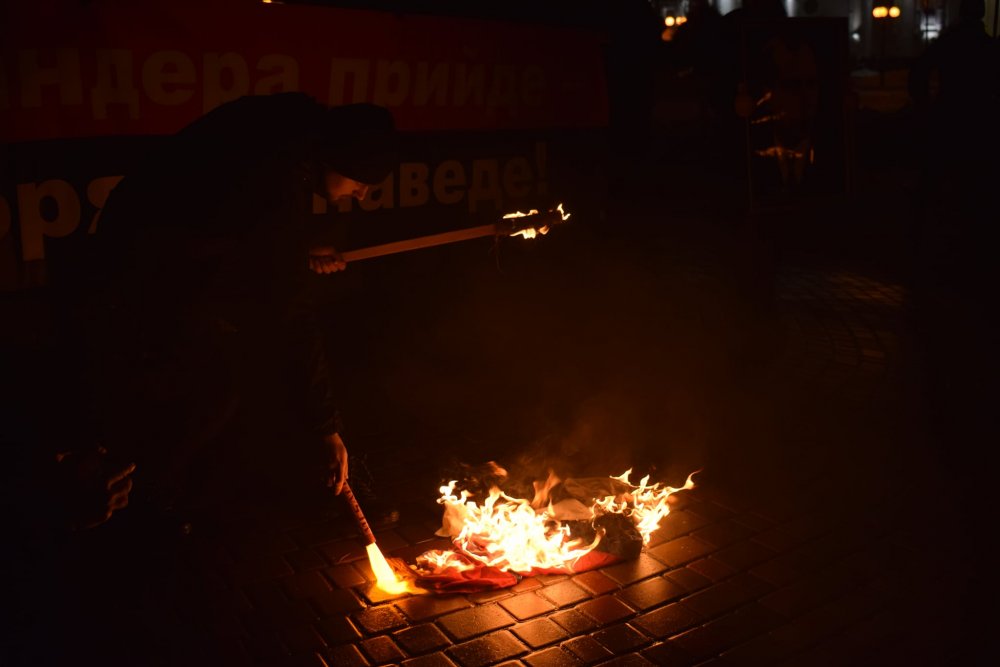 Захід завершився запаленням фаєрів та виконанням державного славня. Також один з учасників акції публічно спалив прапор Російської Федерації.