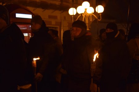Понад 150 людей зі смолоскипами та прапорами пройшли центральною вулицею Соборності від переходу «Злато Місто» до пам’ятника Івану Мазепі на Соборному майдані. До акції долучилися й кременчужани.