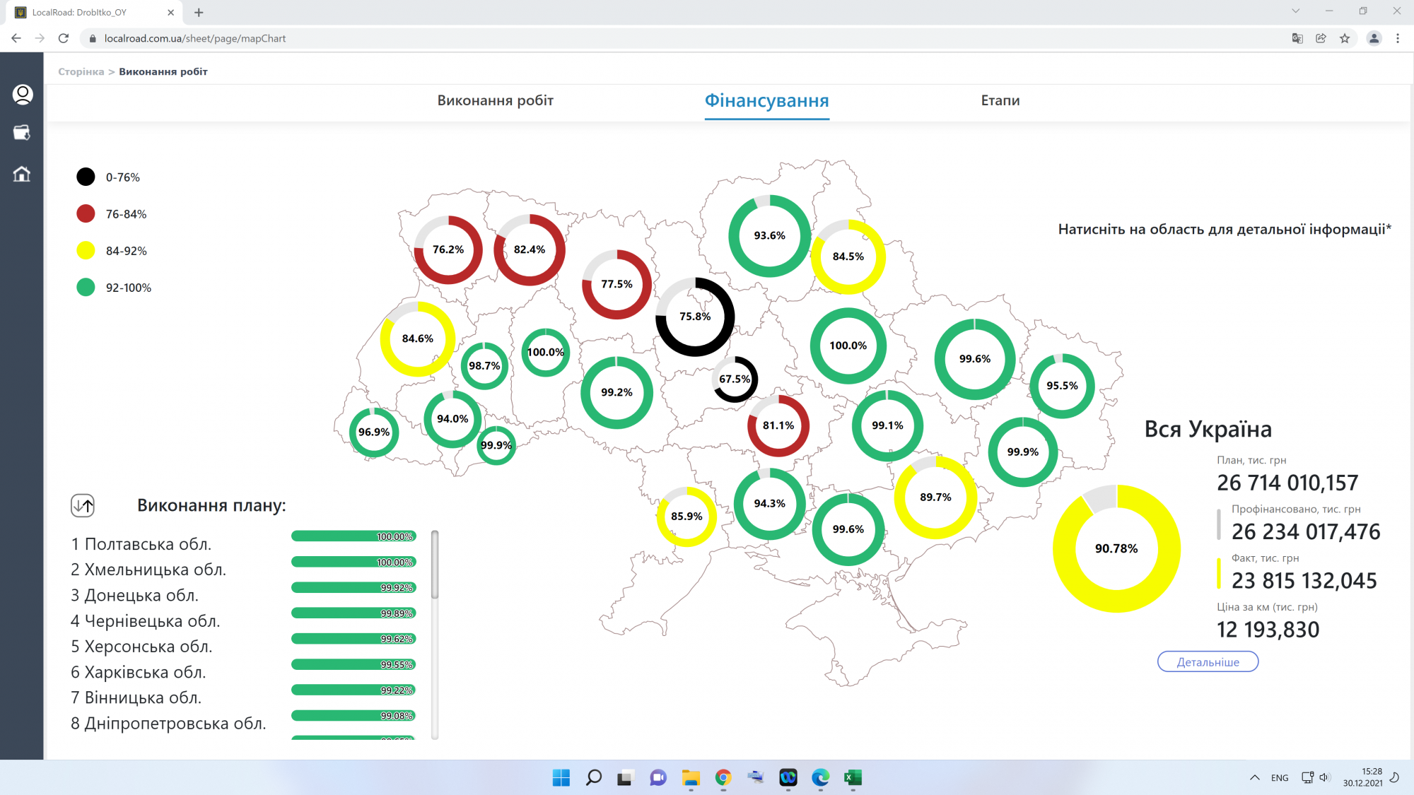 Полтавська ОДА використала у 2021 році 100% коштів на ремонти місцевих доріг. Це найкращий показник серед інших областей України.
