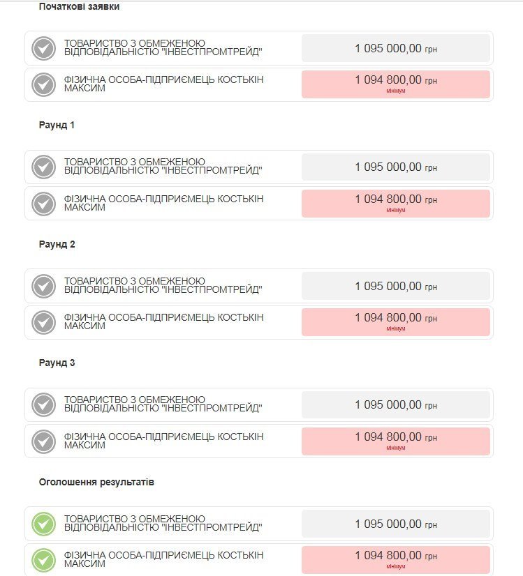 Ціна двох вживаних авто — 1 094 800 грн, і це на 200 грн нижче від очікуваної вартості закупівель, яку виставив замовник — КТУ. Суперник у ФОПа Костькіна був лише один — це ТОВ «Інвестпромтрейд», який запропонував точно таку ж ціну, як очікувана — 1 095 000 грн — тобто на 200 грн вище, ніж у переможця. Цікаво, що, попри такий мізерний розрив, під час аукціону обидва учасники більше не знижували ціну. Тобто конкуренція була суто умовною.