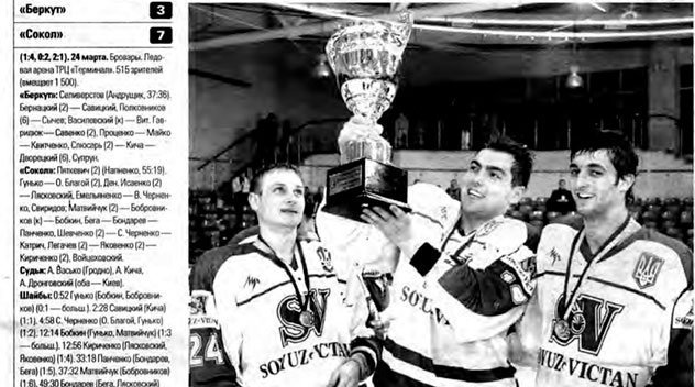 Боротьби в фіналі, на льоду броварського «Термінала» тоді не вийшло. «Сокіл» фактично зняв питання про переможця ще в першому періоді. Цікаво, що в складі «Беркута» першим і єдиним за кар’єру хет-триком відзначився граючий тренер Олександр Савицький.