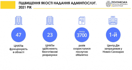 В області функціонують 47 центрів надання адміністративних послуг, 52 віддалені робочі місця та 3 територіальні підрозділи. У 23 ЦНАПах можна сплатити адміністративний збір безготівково.