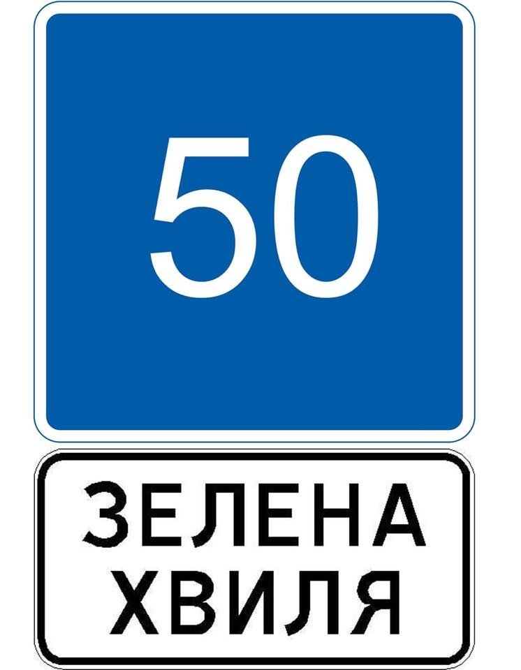 Знаки сповіщають про те, що в зоні їх дії світлофори настроєні таким чином, щоб автомобілі, які рухаються зі швидкістю 50 км/год, могли без зупинок проїжджати на зелене світло.
