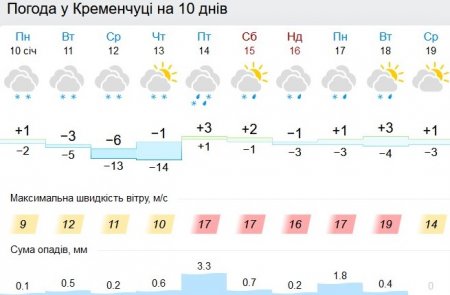 Надвечір 10 січня температура повітря знизиться, і на дорогах та тротуарах з'явиться ожеледиця. Так, з 11 по 14 січня очікується 10-15?С морозу вночі і 4-9?С вдень.