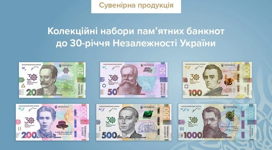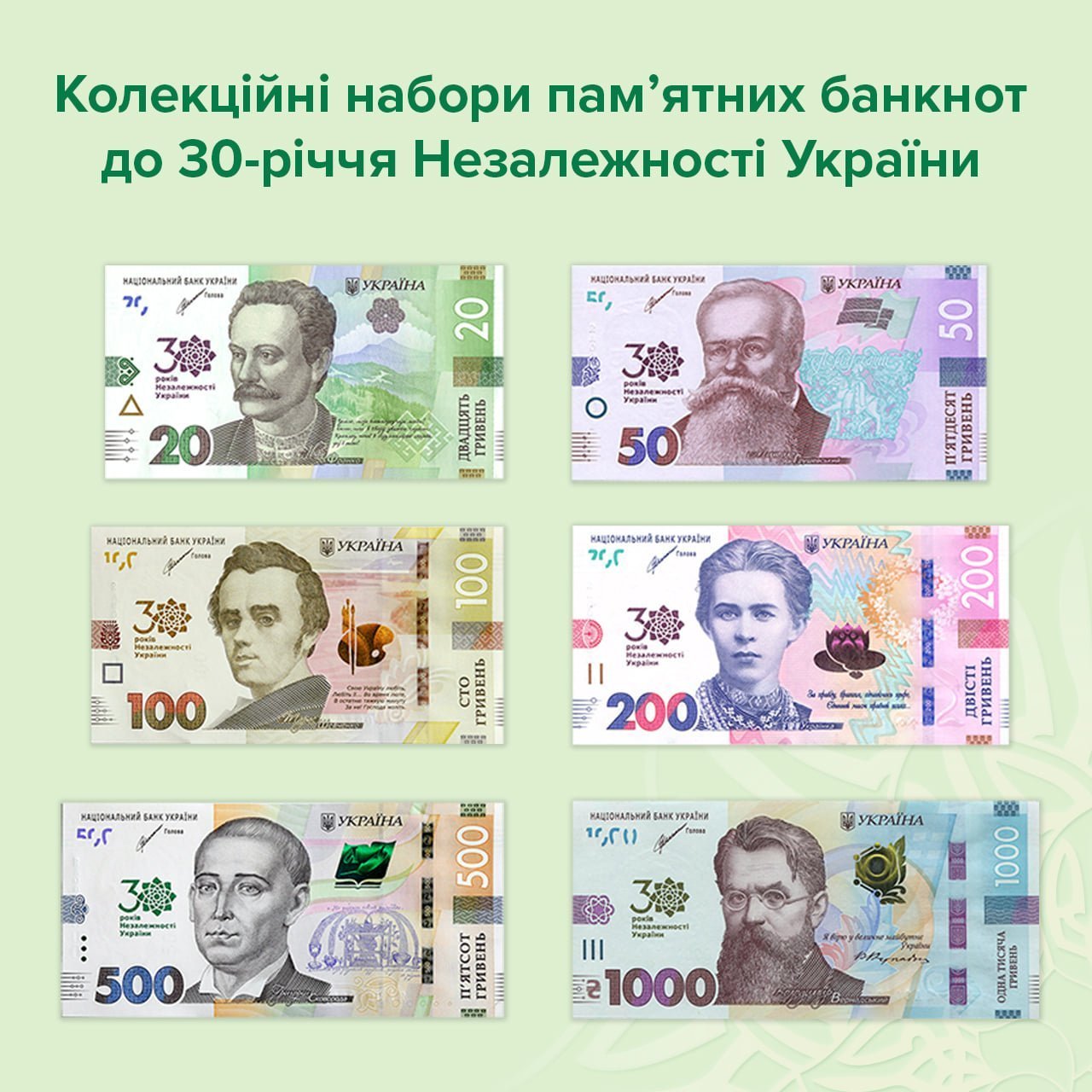 Національний банк України до 30-річчя Незалежності України увів в обіг такі пам’ятні банкноти: