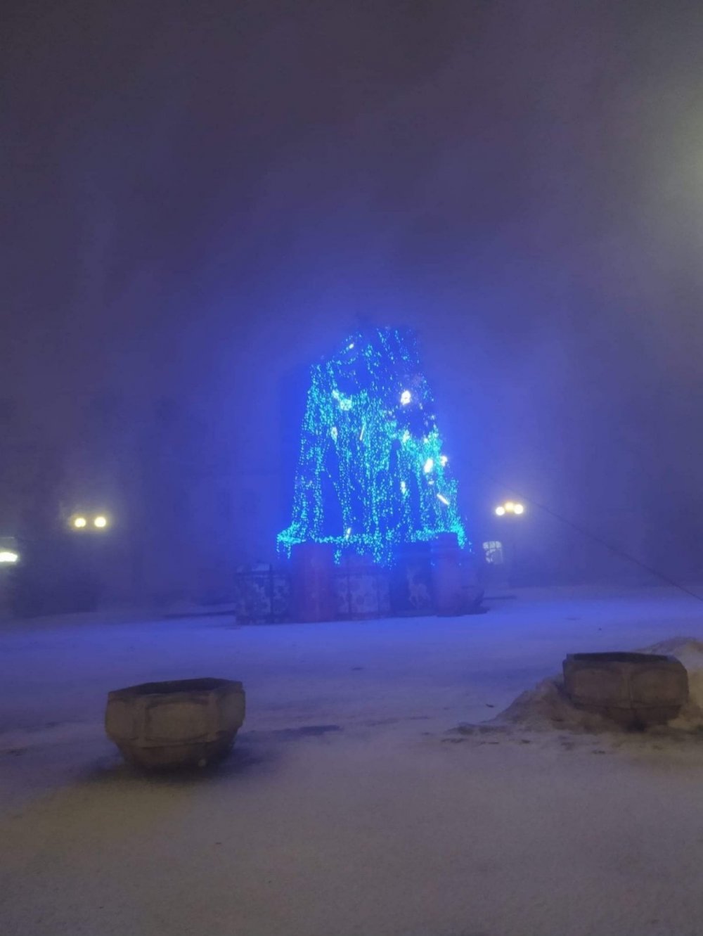 Внаслідок сильної хуртовини у Лубнах впала центральна ялинка. Про це у фейсбуці повідомила телестудія «Лубни».