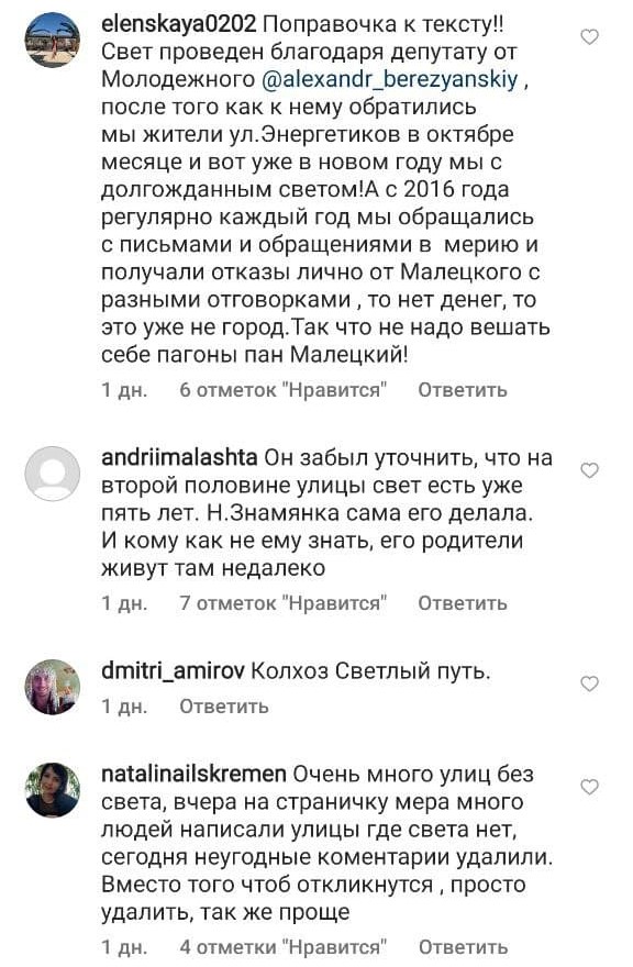 А ось такі коментарі надіслали нам читачі в інстаграм щодо освітлення: