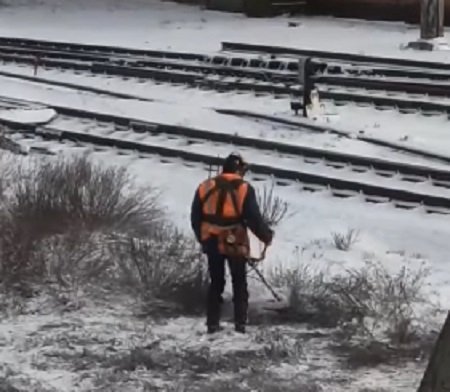 У Полтаві посеред зими біля залізниці розпочали покіс сухої трави. Відео опублікували у групі «Вільні профспілки Південної залізниці».