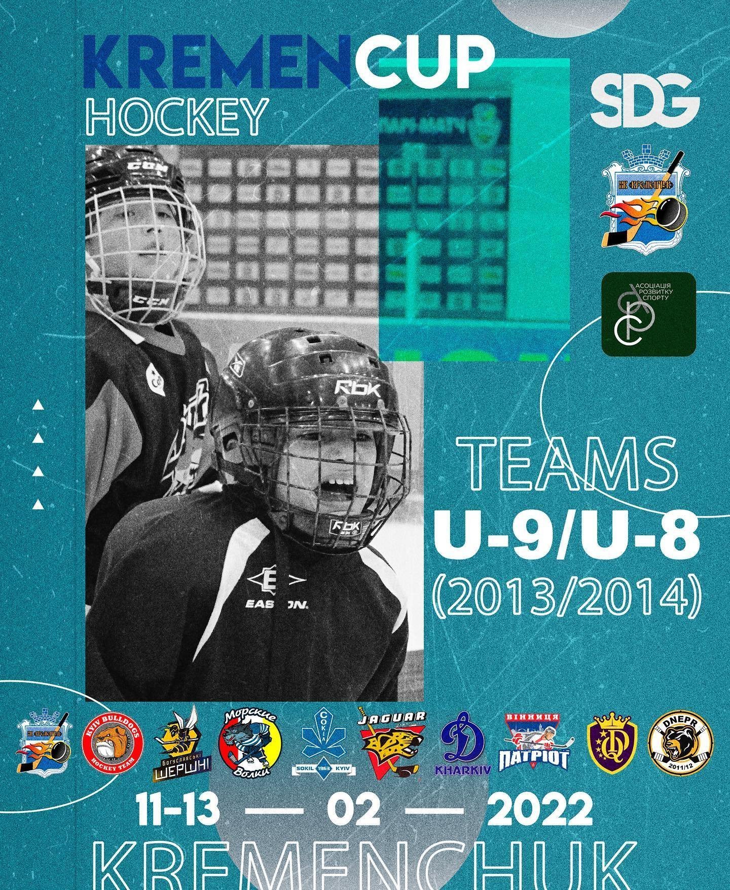 З 11 до 13 лютого у Кременчуці на льодову арену «Айсберг» з’їдуться 10 потужних команд з різних куточків України на всеукраїнський хокейний турнір «Kremen CUP». Змагання пройдуть серед команд 2013/14 років народження з Кременчука, Дніпра, Києва, Богуслава, Одеси, Вінниці та Харкова.