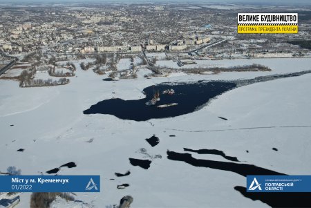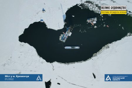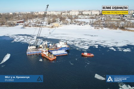 Для роботи на скованій льодом річці застосовують буксир-криголам, який дозволяє суднам безперебійно рухатися під час влаштування опор мосту.