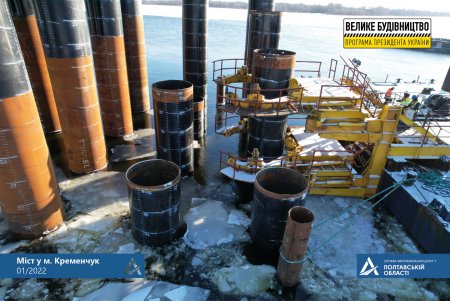 5 сталевих труб за допомогою віброзанурювача та дизель-молота без виїмки ґрунту вже влаштували на лівому пілоні мосту через Дніпро. Про це повідомляє Служба автомобільних доріг у Полтавській області.