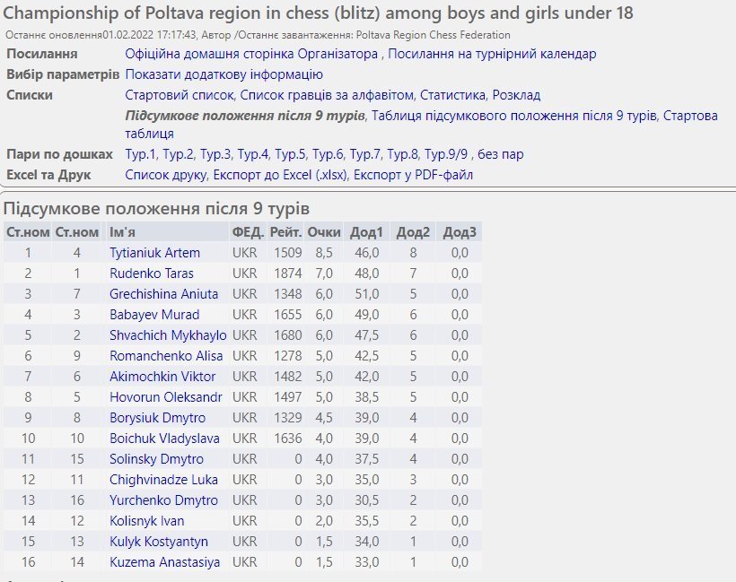 Артем Титянюк кременчуцький шахіст з Каїсси став переможцем у бліці з блискучим результатом 8.5 з 9.