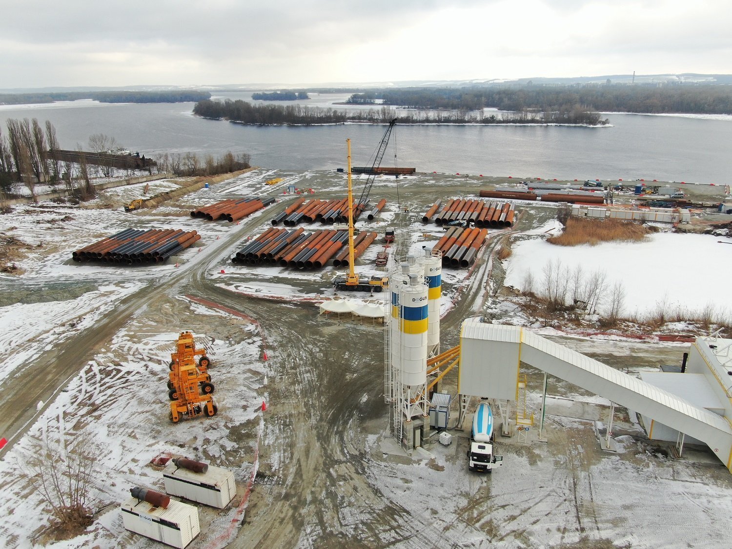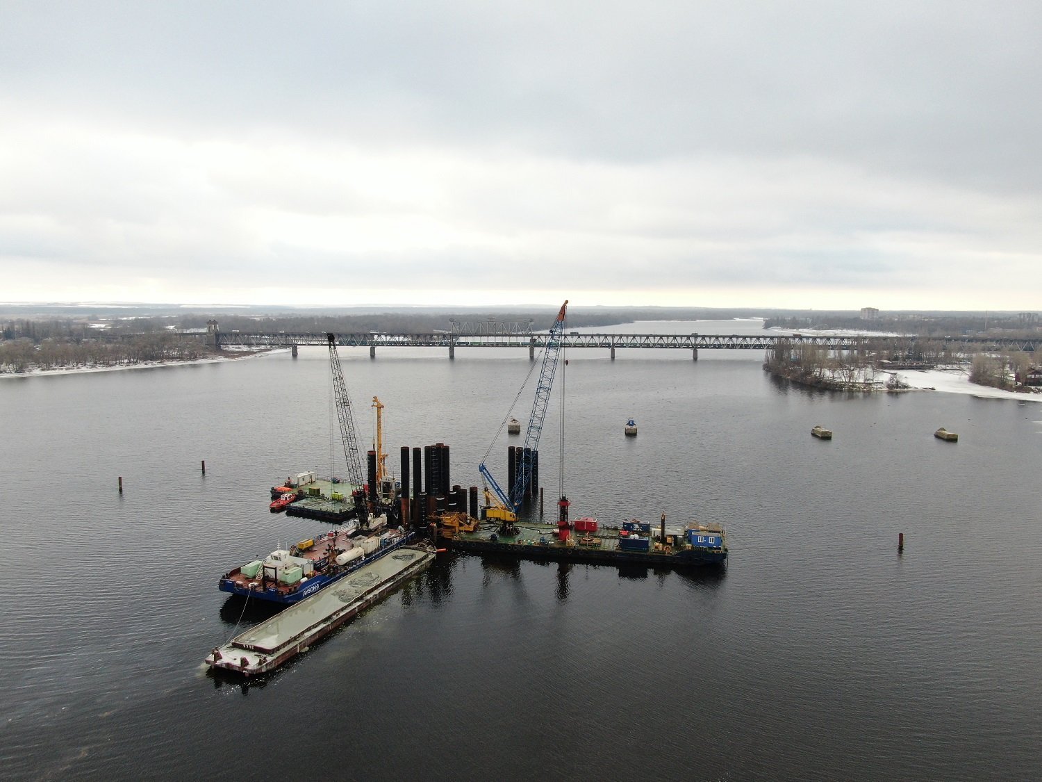 Термін будівництва нового мосту у Кременчуці скоротять із 4 років, передбачених договором, до 3 років. Про це повідомили представники Служби автомобільних доріг Полтавської області та представники турецької компанії «Догуш Іншаат Ве Тіджарет Анoнім Шіркеті», яка виконує роботи, під час престуру на будівництво мосту 4 лютого. Щоб вписатися у стислий графік, будівельники не припиняють роботи навіть вночі.