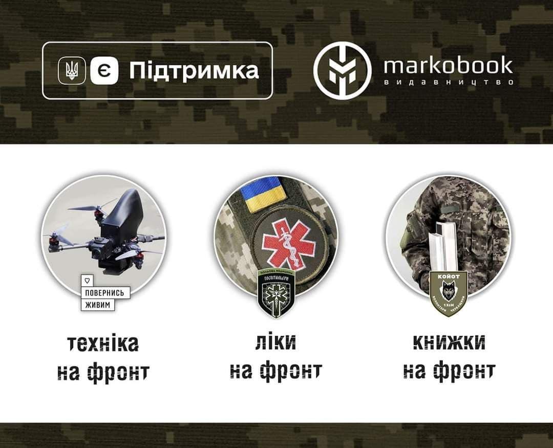Кошти, зібрані видавництвом, підуть на потреби Медичного батальйону Госпітальєри Госпитальеры Hospitallers та на благодійні рахунки фонду Повернись живим