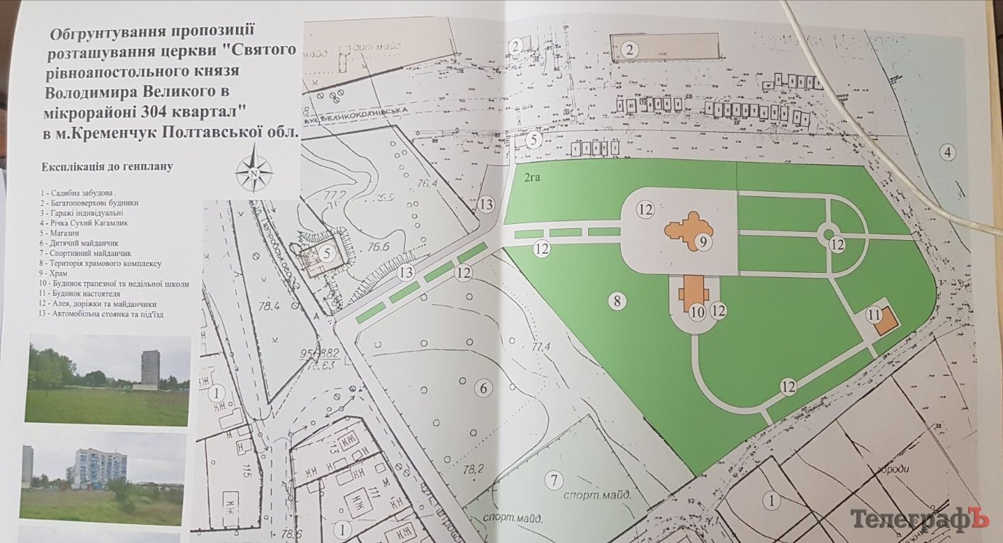 Згідно з генеральним планом Кременчука та планом зонування території, ділянка, на якій проєктуються релігійні будівлі відноситься до зони розміщення спортивних комплексів та до проєктної зони озеленення загального користування, для якої допустимі види використання, які потребують спеціального дозволу як культові споруди.