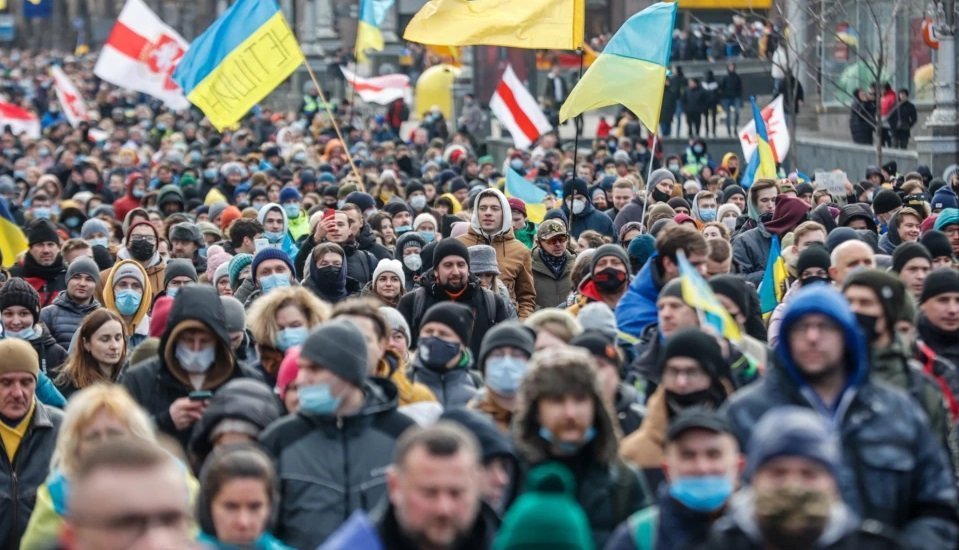 У Києві декілька тисяч людей вийшли на Марш єдності за Україну на тлі загрози нового військового вторгнення Росії на українську територію. Марш стартував у парку Шевченка і пройшовсь до майдану Незалежності.