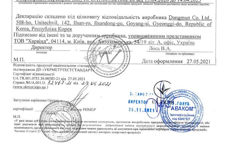 ТОВ «Аваком» надало документи про сертифікацію від дилера DONGMUN – українського ТОВ «Харвінд».