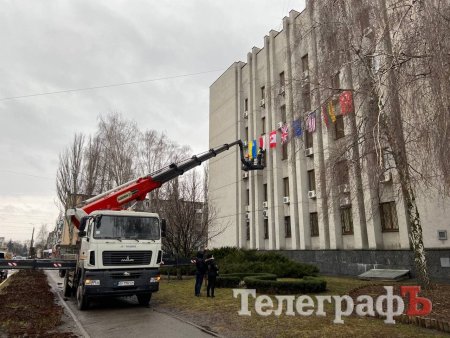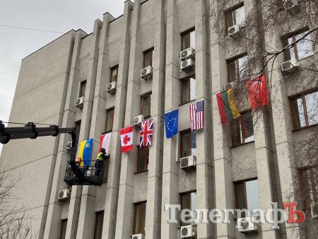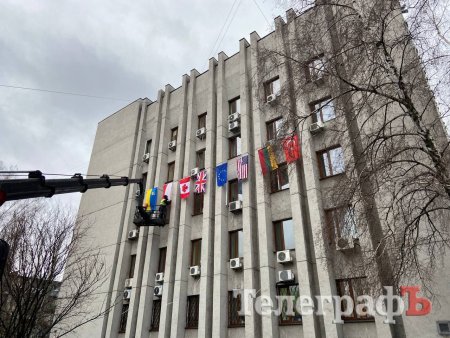 На адмінбудівлі мерії Кременчука замайоріли державні прапори країн, які підтримують Україну та надають допомогу у цей складний для країни час. Разом зі стягом України у День єднання з'явилися прапори: Польщі, Канади, США, Європейського союзу, США, Литви та Туреччини.