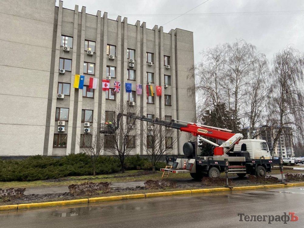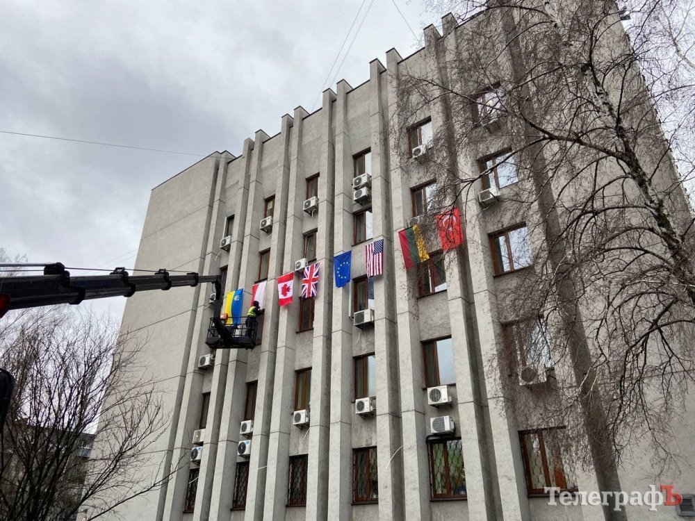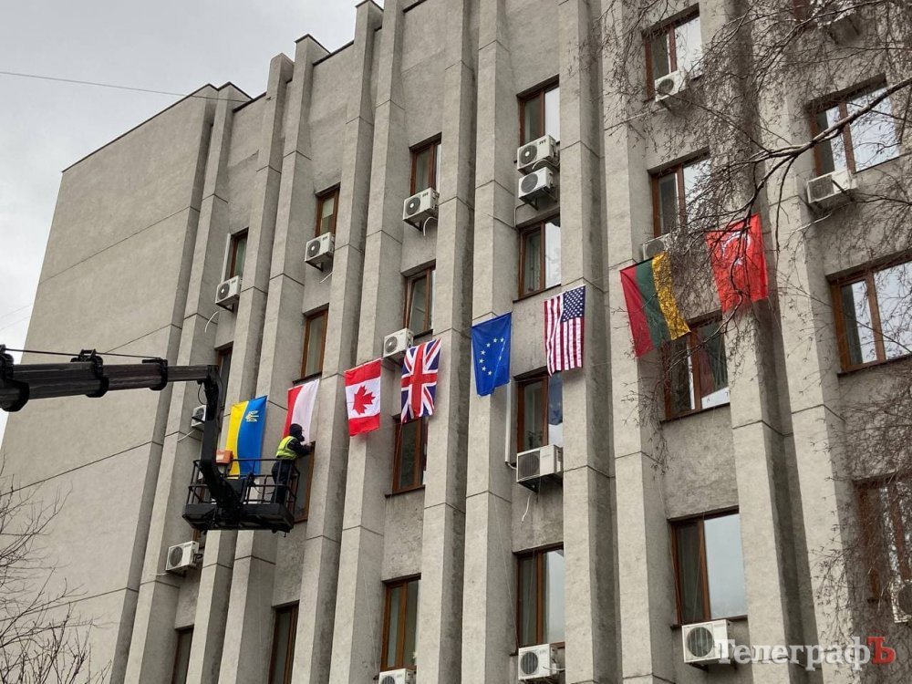 На адмінбудівлі мерії Кременчука замайоріли державні прапори країн, які підтримують Україну та надають допомогу у цей складний для країни час. Разом зі стягом України у День єднання з’явилися прапори: Польщі, Канади, США, Європейського союзу, США, Литви та Туреччини.