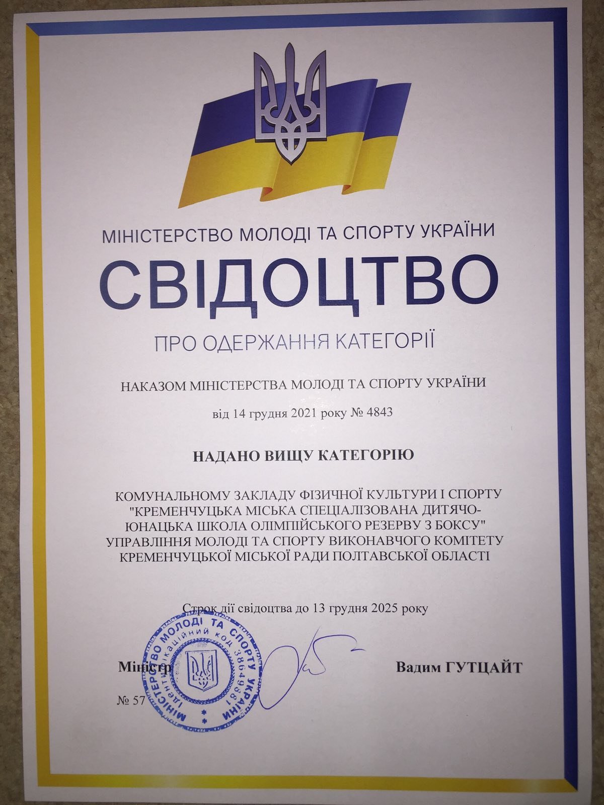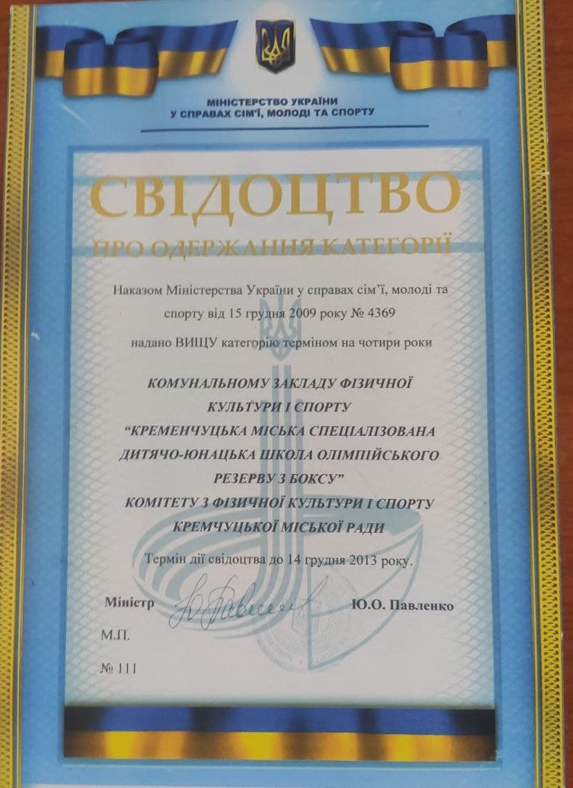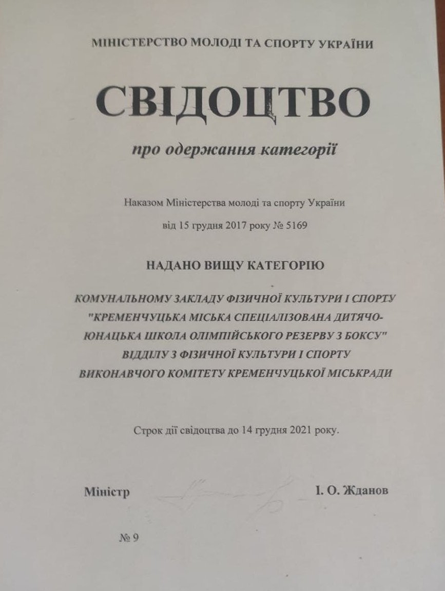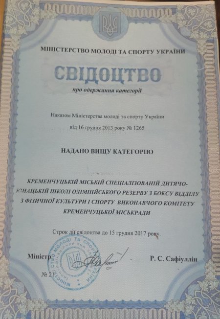 Єдина у Кременчуці спортивна школа з вищою категорією підтвердила свій статус. Школа олімпійського резерву вчетверте отримує свідоцтво про одержання категорії. Минулого тижня директор СДЮШОР Олег Гончар отримав свідоцтво від директора департаменту Олімпійського спорту Міністерства молоді та спорту Нельсона Гайріяна. Статус вищої категорії розрахований на один олімпійський цикл, до 2025 року.