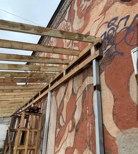 Сьогодні, 22 лютого, «Кременчуцький ТелеграфЪ» помітив як з муралу «Миру старій та добрій Землі» почали прибирати будівельну конструкцію й відкрили пам'ятку монументального мистецтва.