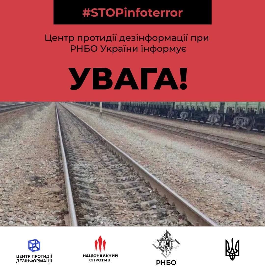 Центр протидії дезінформації при РНБО України повідомляє про можливі диверсії на залізничних шляхах.