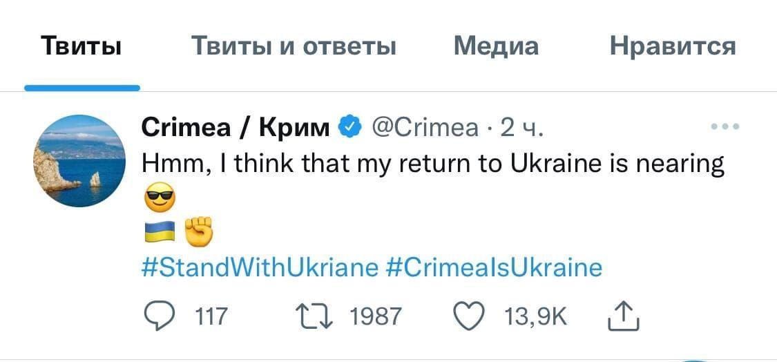 Крім того, додано хештеги #StandWithUkriane #CrimeaIsUkraine.