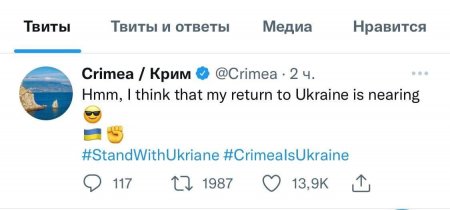 Поки українці та росіяни в Криму масово відмовляються воювати проти України, в офіційному Twitter-акаунті анексованого півострова з'явилося патріотичне повідомлення. Про це повідомляє УНІАН.