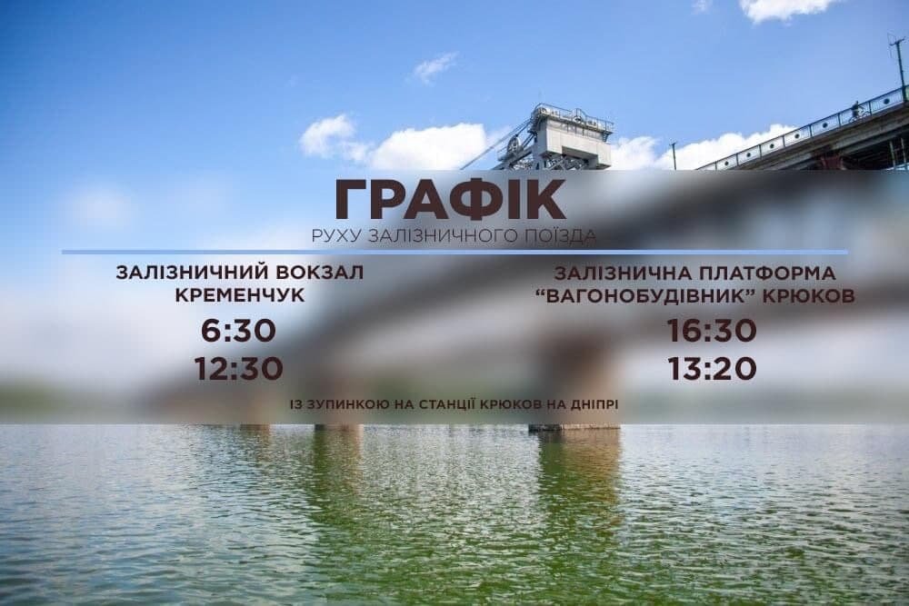 Задля того, щоб дати можливість людям потрапити з одного берега на інший Укрзалізницею прийняте рішення про запуск так званого рейкового автобуса, який курсуватиме з Кременчука на Крюків і у зворотному напрямку, – йдеться у повідомленні.