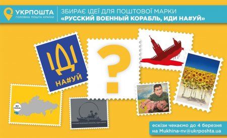 Українська марка, яка є таким же символом держави як прапор, герб або гімн, святкує ювілей – 30 років. Але через війну з росією вирішили замінити святкування Всеукраїнським народним конкурсом на найкращий ескіз поштової марки під назвою: «Русский военный корабль, иди на#уй!».