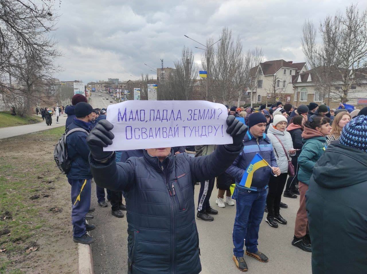 Такі акції проти російської окупації тривають по всій Запорізькій області.