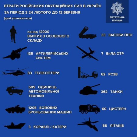 Яких втрат зазнав ворог станом на 12 березня