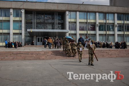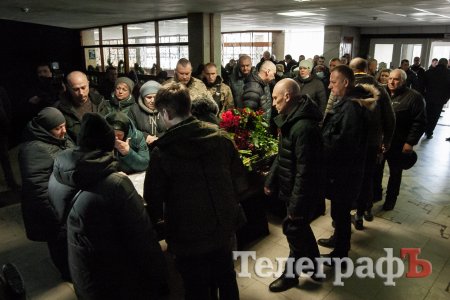 Церемонія прощання відбулася у Міському палаці культури. Кременчужани, представники влади та побратими, схилили голови та поклали квіти до труни загиблого Героя. Під мелодію «Плине кача…» та звуки духового оркестру кременчужани на колінах віддали шану захиснику України.