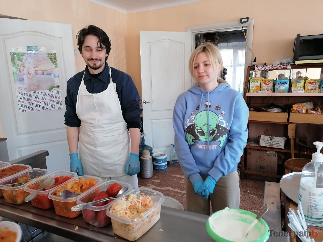 Організували харчування волонтери. Логістику продумав Юрій Білоус, а долучалися усі, хто хотів. Наприклад, Олександр та його дружина – кияни, які теж рятувалися від обстрілів. Приїхали до родичів у Кременчуці – тут долучилися до волонтерства.