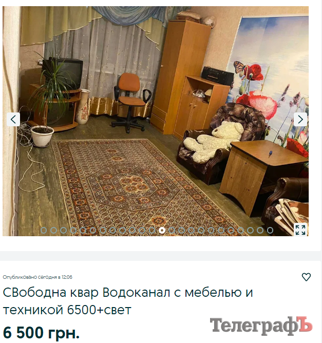 «Здам 2-х кімнатну квартиру з меблями, технікою: 5000 грн + комунальні послуги». А на додаток — 3000 грн послуги агентства. Однокімнатна квартира — 2 тис грн плюс комуналка, а також 2 тисячі завдаток плюс 2 тис грн агентству. Кімната в малосімейці - 2500 плюс вода та світло.