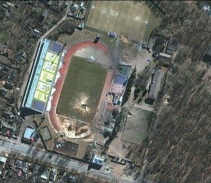 Наприклад, у Чернігові російські окупанти, а стадіон скинули 8 снарядів. У першу ніч туди потрапила ракета, в другу обстріляли з «Градів», в третю – ще один обстріл авіацією.