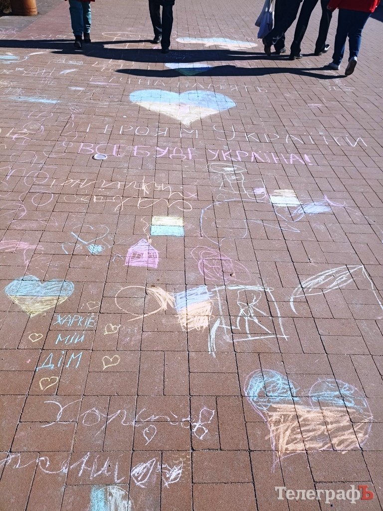 Наше місто поступово оговтується та оживає після повномасштабного вторгнення росії. З першими променями весняного сонця на вулиці повернувся дитячий сміх. Маленькі харків’яни на набережній залишили слова вдячності мешканцям Кременчука, які гостинно прийняли їх. Крейдою діти написали: «Кременчук, дякуємо від Харкова», «Харків мій дім», «Україна ми переможемо!», «Україна понад усе», «Все буде Україна».