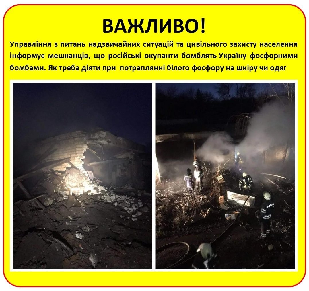 Білий фосфор, яким окупанти бомблять мирне населення в українських містах та селах, викликає важкі опіки, аж до кісток та кісткового мозку.