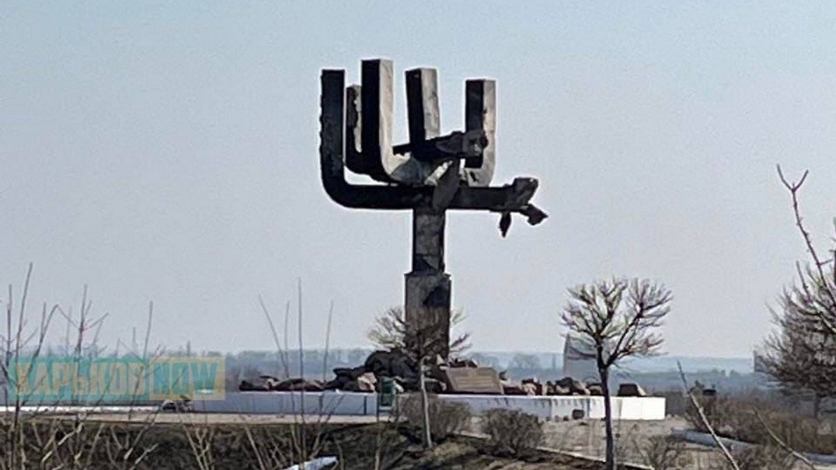 Російські окупанти пошкодили монумент на території меморіального комплексу в Дробицькому Яру під Харковом. Фото обстріляної менори опублікувало Міністерство оборони України у Twitter.