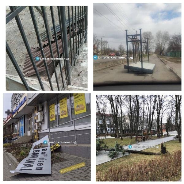 Сьогодні у Кременчуці лютував буревій. Від сильного вітру не витримують не лише рекламні вивіски, а й з деяких будинків зриваються частину даху. У соцмережах кременчужани ділилися наслідками сильного вітру.