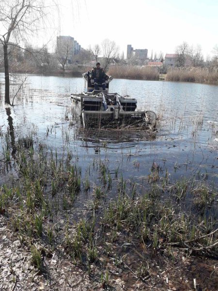 Бригада КП «Кременчук АКВА-СЕРВІС» прибирає місце масового відпочинку від сміття (біля річки Дніпро, човнова станція «Демурівка»).