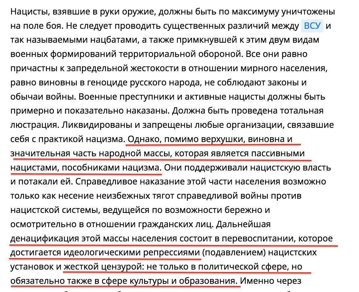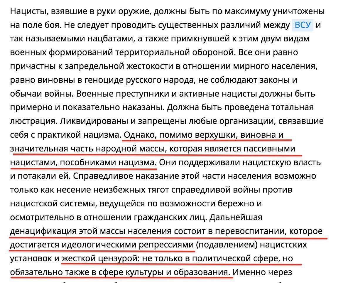 Нижче скріншоти цієї статті з рашистськими гаслами що дуже нагадують ідеї та гасла Третього рейха, нацистів та фашистів часів Другої світової війни.
